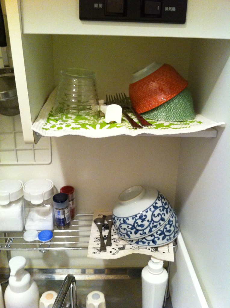 狭いキッチンだけど、洗ってすぐに拭いて収納・・・と、そこまでマメに出来る私でもなく、、、こうして乾いた頃に収納するペースがちょうどいいのです。